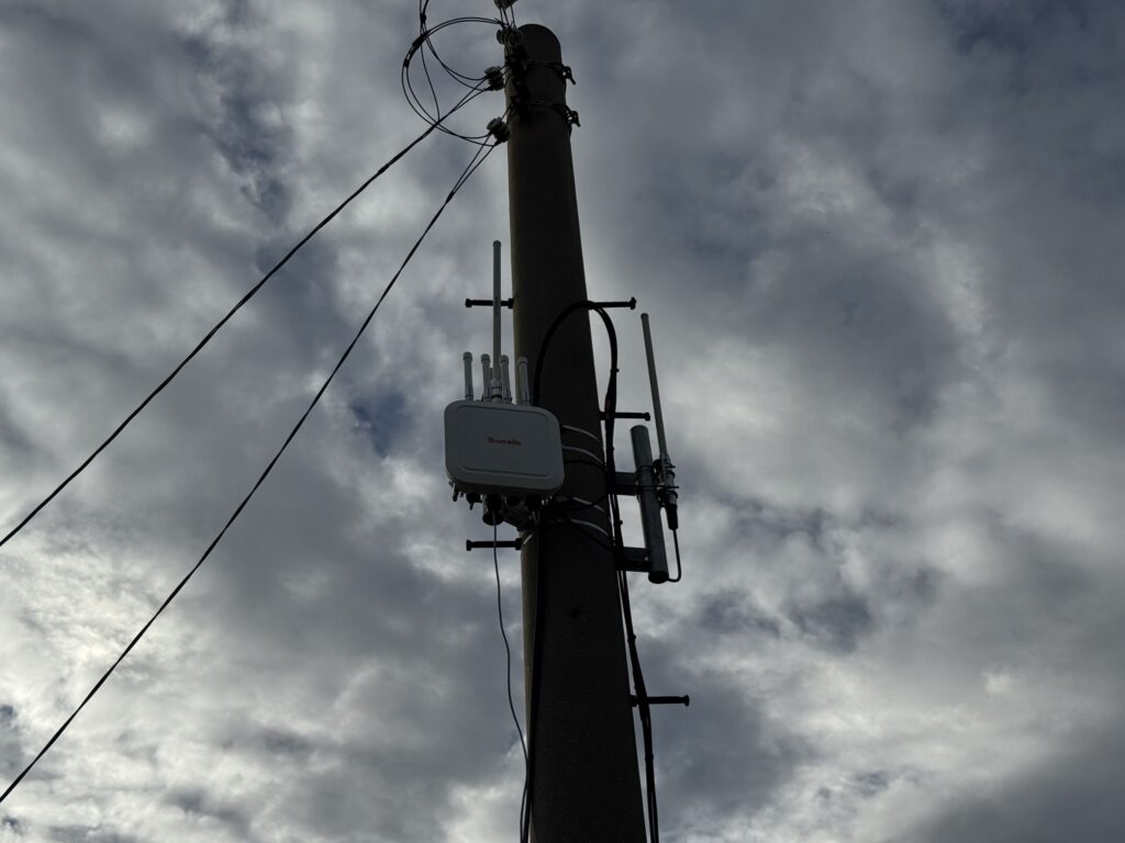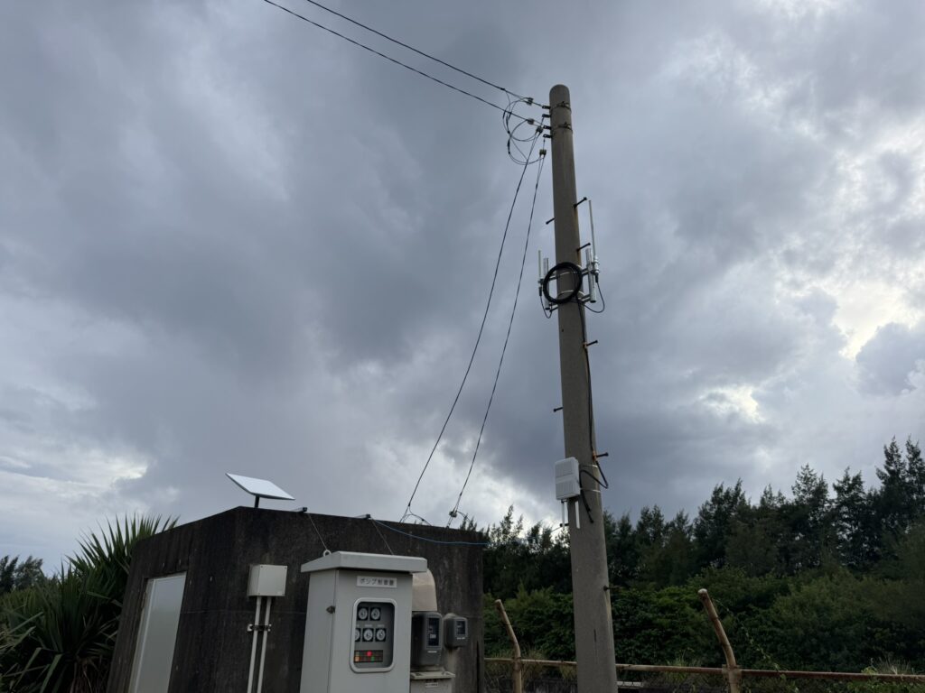 建物上:スターリンクアンテナ、電柱:屋外用Wi-Fi